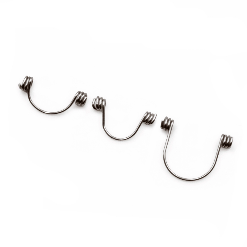 Resorte de torque fabricados en acero inoxidable marca Oralium, disponibles en tres tamaños y diferentes calibres.