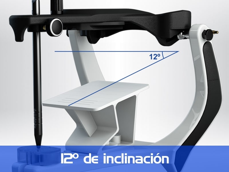 La mesa de camper es un soporte utilizado para montaje estandarizada (12°) del modelo superior en el articulador. Posee líneas de referencias medianas, laterales y anteriores para el posicionamiento (alineamiento) del modelo de yeso.