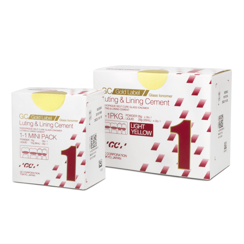 GC Gold Label 1 fue el primer cemento fijador de ionómero de vidrio de GC introducido hace 30 años, primeramente para la cementación definitiva de prótesis con soporte metálico.