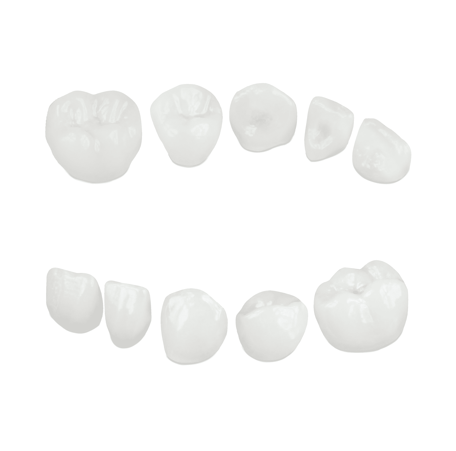 Las edelweiss PEDIATRIC CROWN son carillas de esmalte de composite nanohíbrido con un alto contenido de relleno, sinterizadas con láser y prepolimerizadas. Sus perfiles anatómicos son réplicas del diente temporal natural en cuanto a su excelente estética y sus propiedades físicas mejoradas, por lo que se pueden usar directamente como coronas individuales para los dientes de leche anteriores y posteriores. Las edelweiss PEDIATRIC CROWN son CORONAS PEDIÁTRICAS prefabricadas y radiopacas, que conforman la base anatómica de la capa de esmalte del diente y que, junto con el edelweiss COMPOSITE, se pueden usar en casos de caries superficiales o profundas para restauraciones sencillas o complejas en dientes temporales anteriores y posteriores.
