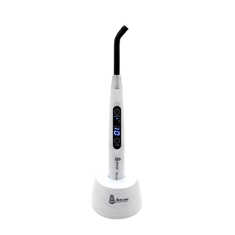 Lámpara de fotocurado con tecnología avanzada de concentración de luz, diseñada para ofrecer una iluminación directa, uniforme y con alta penetrabilidad, optimizando la polimerización de resinas compuestas y otros materiales fotocurables en procedimientos restaurativos.