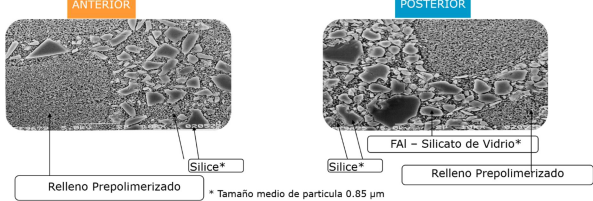 Está resina esta compuesta por una matriz libre de Bis-GMA, basada en una combinación de co-polimeros di-metacrilato y di-metacrilato de uretano (UDMA).Sus rellenos inorgánicos son básicamente sílice, este relleno es seleccionado en su tamaño y distribución para reproducir el comportamiento óptico del diente natural, desde microrellenos, hasta partículas pre-polimerizadas con micro-rellenos, en todos los casos el tamaño promedio de las partículas de relleno es de 0.85 µm